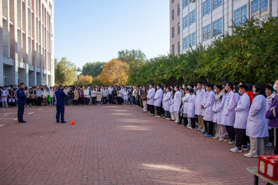 10时整,“火警信号”发出,各楼层迅速组织师生进行疏散,并按照预案进行火灾报警、人员疏散自救、抢救伤员、扑救初级火灾,全体师生在应急疏散中积极配合,听从指挥;各岗位人员各司其职、各尽其责、分工明确、有序地完成了疏散活动。在灭火演练过程中,保卫处消防科科长董立明详细介绍了消防自救面罩、各种类型灭火器和灭火毯的使用方法及注意事项,参与师生均能够遵守操作规程正确实施演练活动。