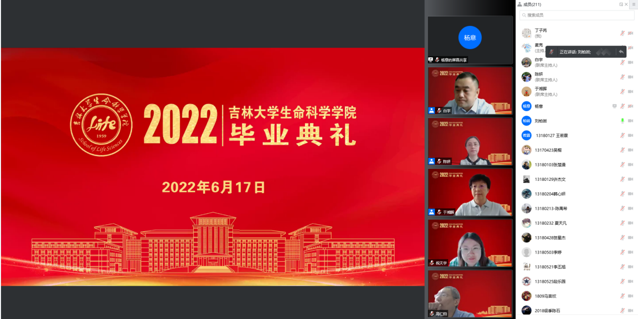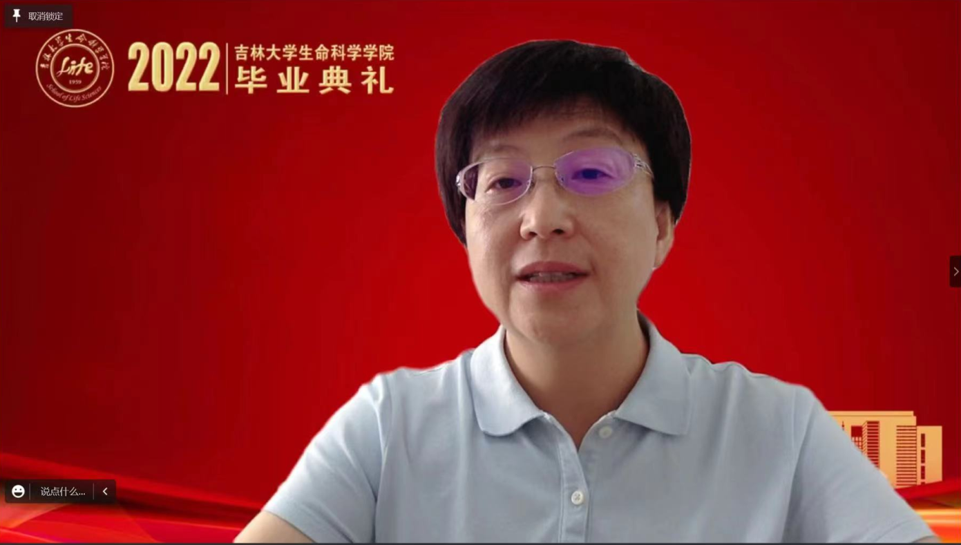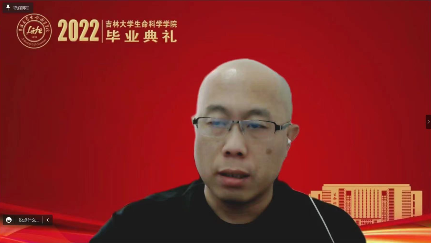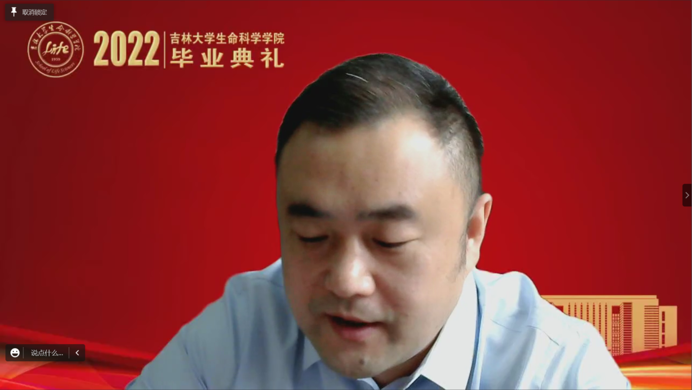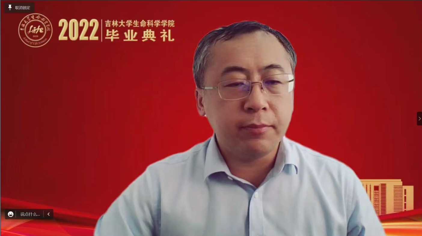 飞速发展的骄人成绩,并对广大毕业生提出四点希望:一是要赓续使命,以实际行动践行榜样精神。在习近平总书记对黄大年同志先进事迹作出重要指示五周年之际,作为生命科学领域的科研攻坚者,要弘扬和践行黄大年精神,将个人的成长成才融入到国家科技强国对于人才的迫切需求之中。二是要矢志不移,在青春的赛道上跑出好成绩。在中国全面实施创新驱动发展战略和健康中国战略的今天,要有咬定青山不放松的韧性,坐得住冷板凳,吃得下冷餐饭,发展成为基础研究拔尖创新人才,发展成为面向社会需求的复合型人才。三是要学以养德,坚守历久弥新的文明耐力。要明辨道德判断,以敏锐的道德判断在成长发展的轨迹上守住人生的底线;要涵养道德自觉,以根植于内心的道德自觉做一个对社会有意义、有贡献的人,一个散发光芒和力量的人;要笃定道德坚守,以高尚的道德坚守实现人生价值的升华。四是要脚踏实地,传承生生不息的生科血脉。要始终坚持“四个面向”,把握科技创新大势,深耕优势领域,做扎根中国大地、奋战科研一线的卓越生物学人才,在民族复兴的伟大事业中,在实现个人远大理想抱负中,大显身手、大有作为,以骄人的成绩伴随母院共赴辉煌!