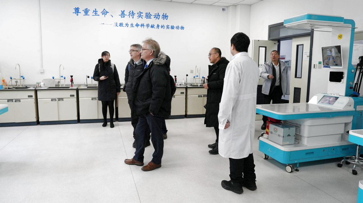 国际交流处相关人员的协同陪同下,中心主任滕乐生教授、副主任王迪教授对代表团予以热情接待并全程引导。代表团先后走访了中心档案室、大健康梦工场、智慧实验室及教学实验室,通过实地察看与细致问询,深入了解中心在学科建设、科研平台搭建及教学资源配置等方面的优势与成果。双方就实验设备运行、科研项目推进、人才联合培养等关键问题展开实时交流,代表团对中心完备的硬件设施、浓厚的科研氛围及先进的教学理念给予高度认可。